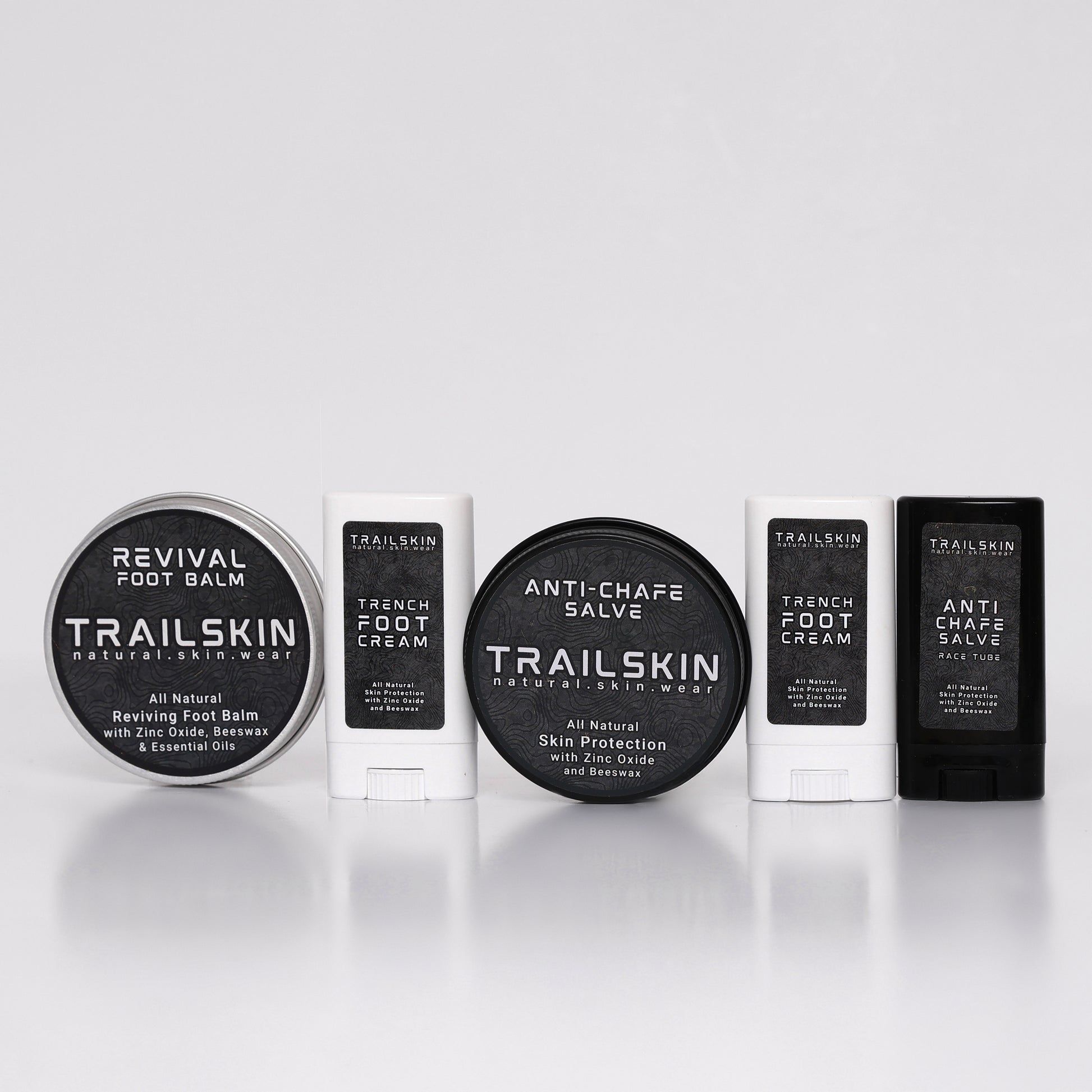 I bought the Trailskin bundle on the back of a recommendation from a friend, & I'm glad that I did. We do ultramarathons, so cover a huge amount of miles every month & as a lot of the training is in the rain & on trails & hills, have wet feet a lot. I've used 2Toms blister powder for many years but tried the antichafe salve & liked it even better. It protects& moisturises the feet (&other bits) & reduces the amount of sweat produced, reducing dampness & hotspots. I now use it whilst at work in the ambulance service too. The balm is a fantastic foot conditioner too. Very happy 🙂