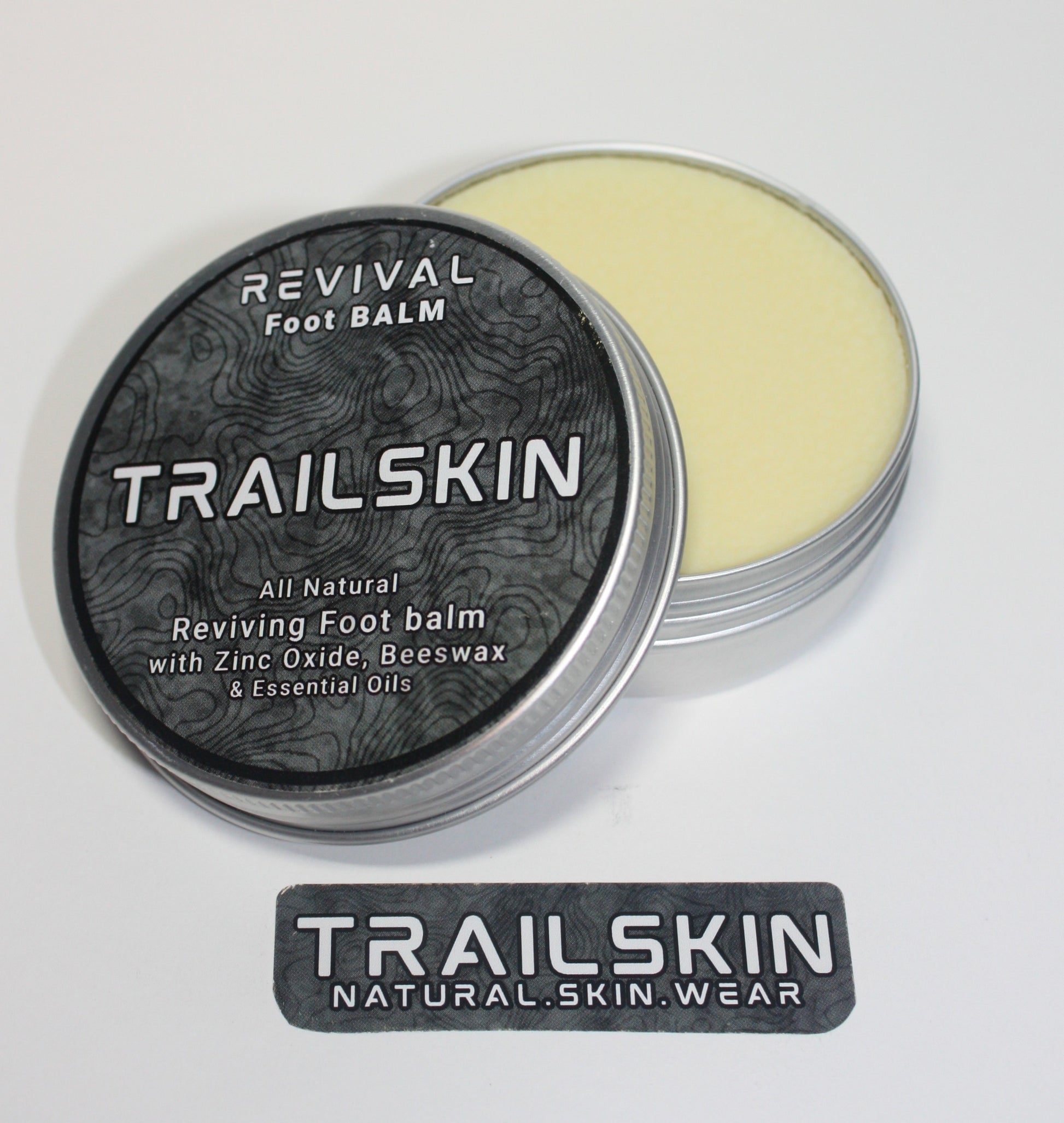 TrailSkin Revival Foot Balm can be used to restore damaged skin, prevent blisters and chafing and revive tired feet.